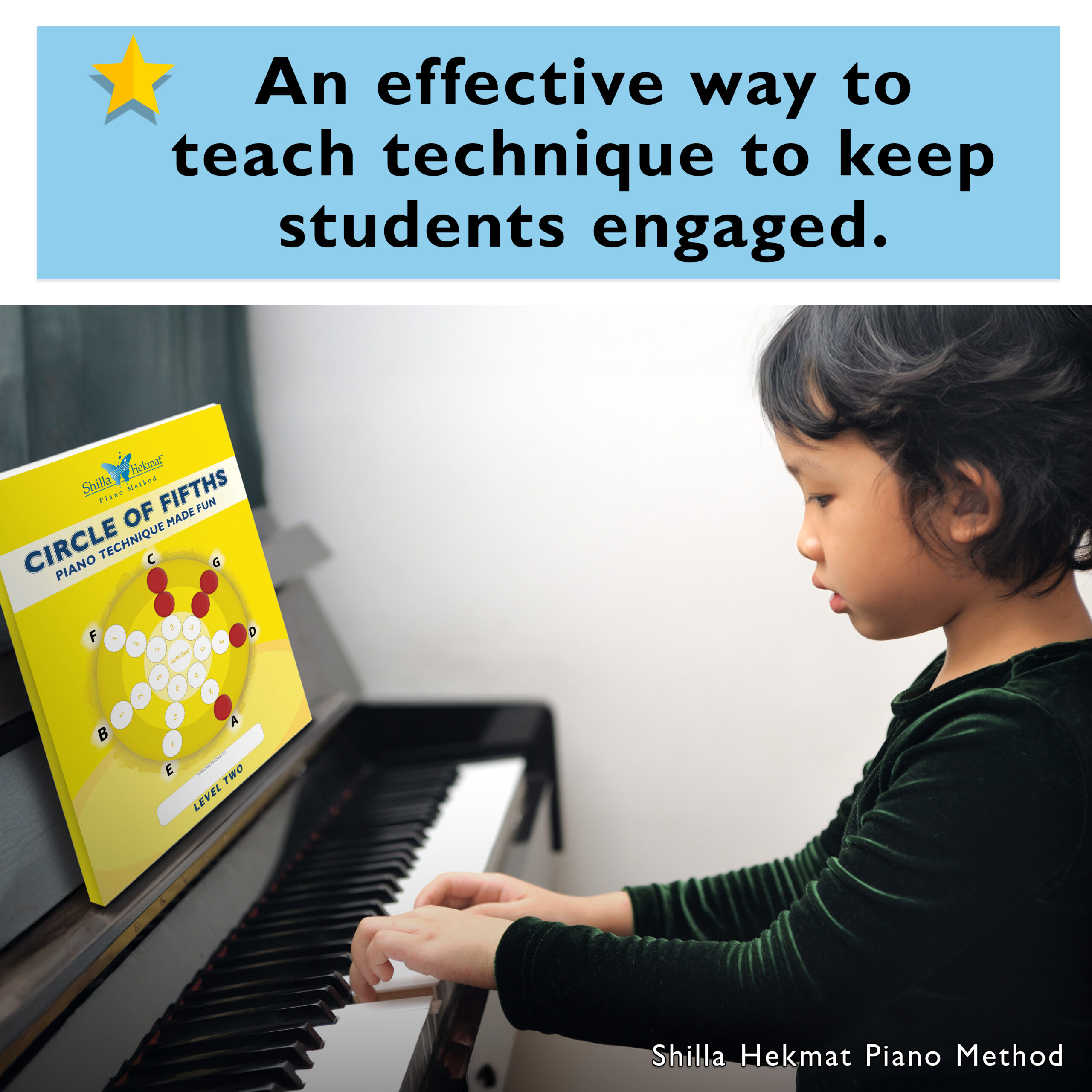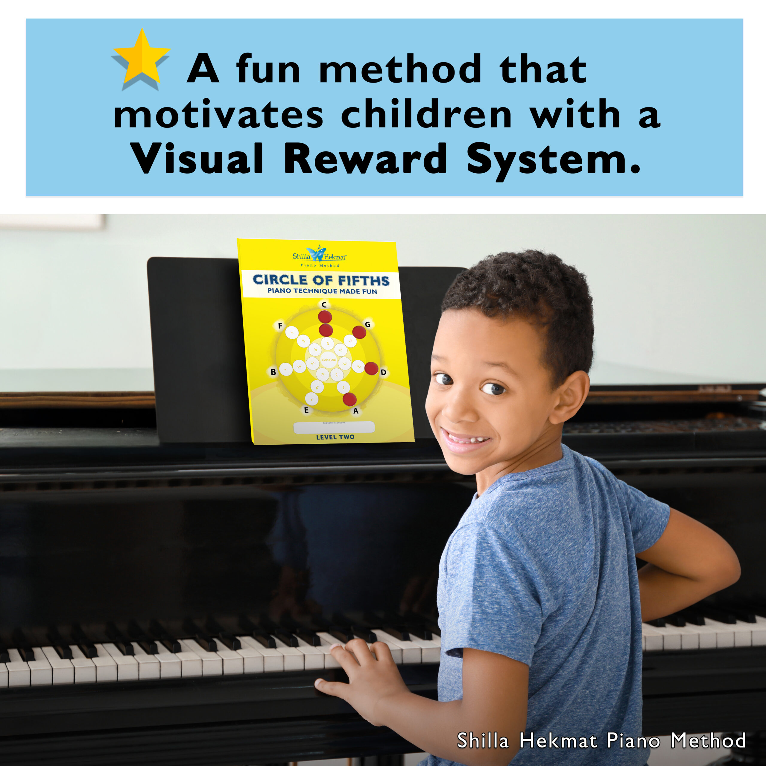 Circle of Fifths teaches the fundamental relationships among major and minor keys, building a solid foundation for five finger patterns, chords, scales, and many other technical exercises. Fun, innovative game format that ensures students will enthusiastically learn the Circle of Fifths Diagrams and images to inspire visual learning of each concept Technical Exercises to develop hand position, coordination, and articulation Written homework to help students successfully learn the 5 finger positions and all the major chords Gold Seal Challenge for testing students’ knowledge and marking the completion of the game Flashcards included to visually master all the major chords and five finger positions Certificate of Completion for graduation to the next level